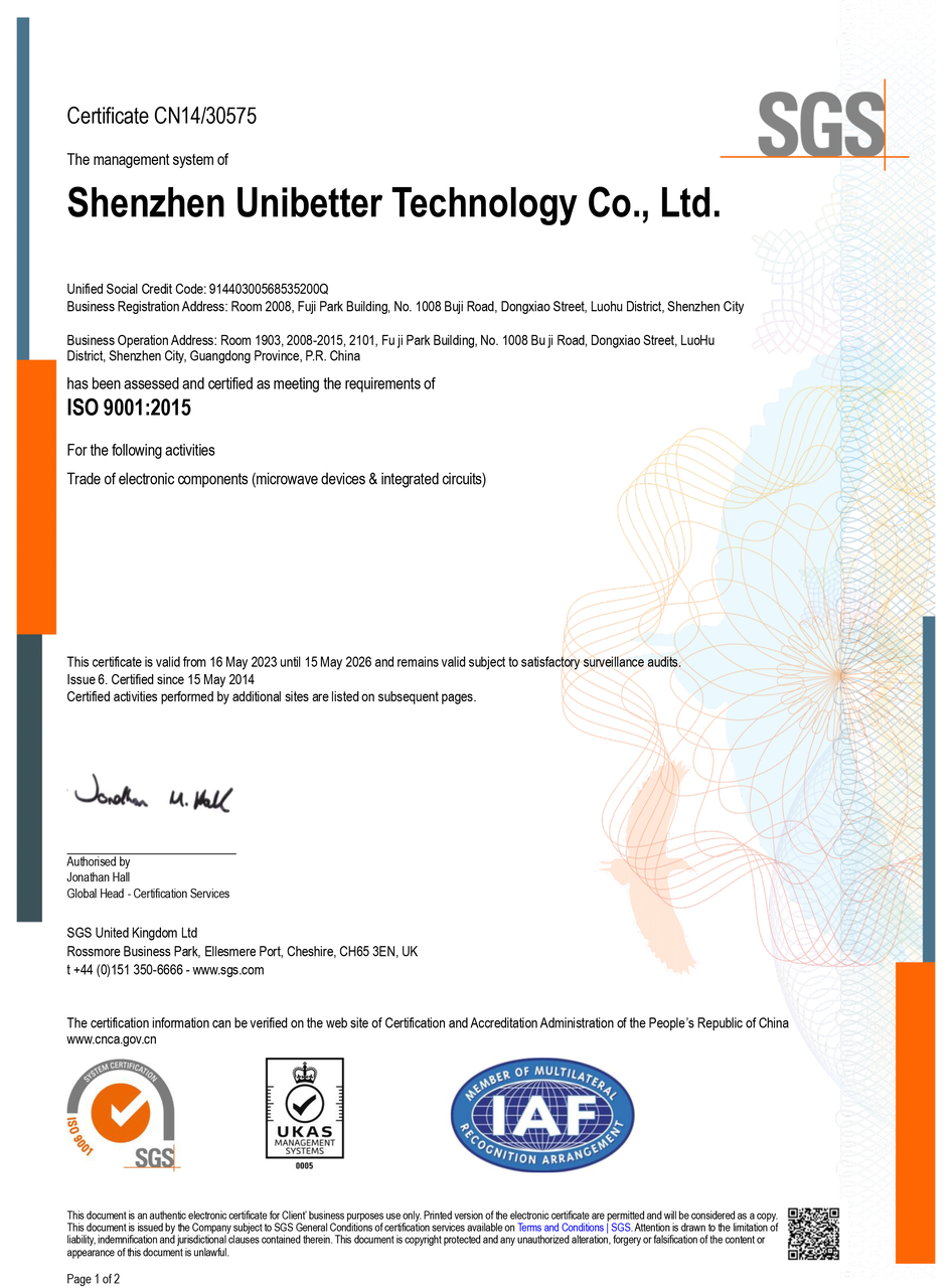At UniBetter, we have a smart warehouse with 6S standard warehousing management and a testing center covering an area of 2000 square meters. Over 15 Quality Engineers diligently inspect the incoming materials by following the CSD quality management system standards to ensure that our electronic parts are well-tested and not defective.
